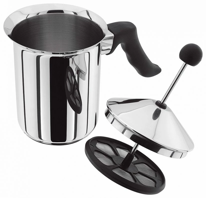 Heat the milk in the pan on a stove and pump the frother up and down. The milk is frothed quickly to a creamy froth. The milk frother doubles as a sauce pot and it can be used on all types of stoves, including induction stoves. This 18/10 stainless steel frother is dishwasher safe.