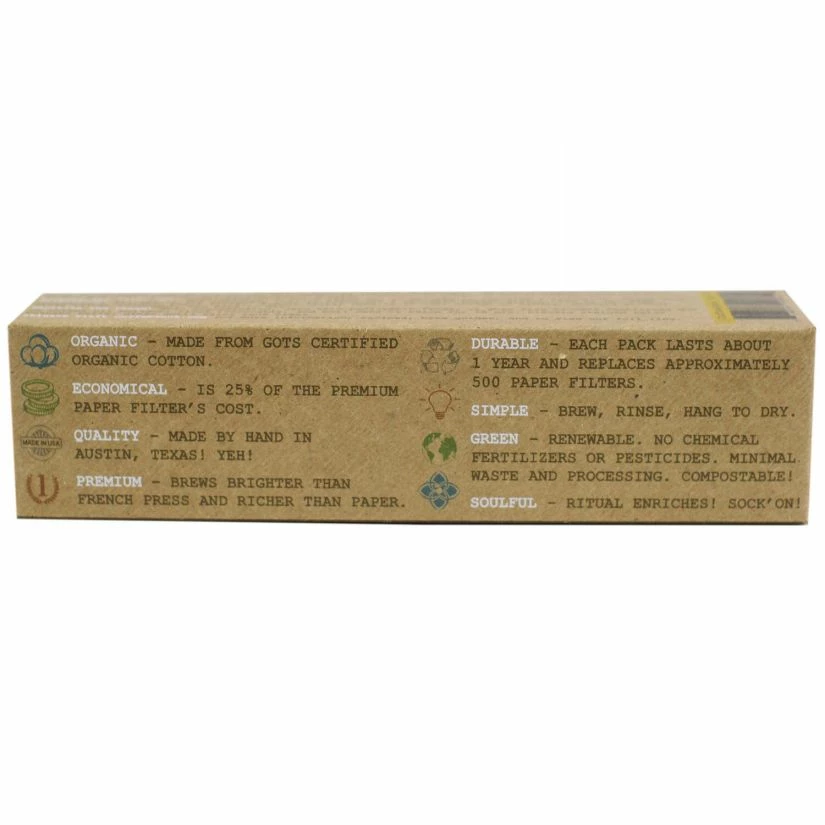 CoffeeSock Drip # 6 Cone coffee filters are a reusable alternative to paper filters and nylon sacks. Cotton absorbs some of the oils released from coffee beans yet lets acids pass through. The resulting cup is clear crisp, rich and robust with all the acid of paper brewed coffee, without the paper taste.