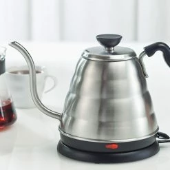 Kalita Coffee Pot stainless steel water kettle with a thin spout. The thin spout allows maximum control while pouring. Stainless steel has high thermal conductivity, which makes it suitable for the use on the stove or cooking plate. Perfect for pour over coffee.